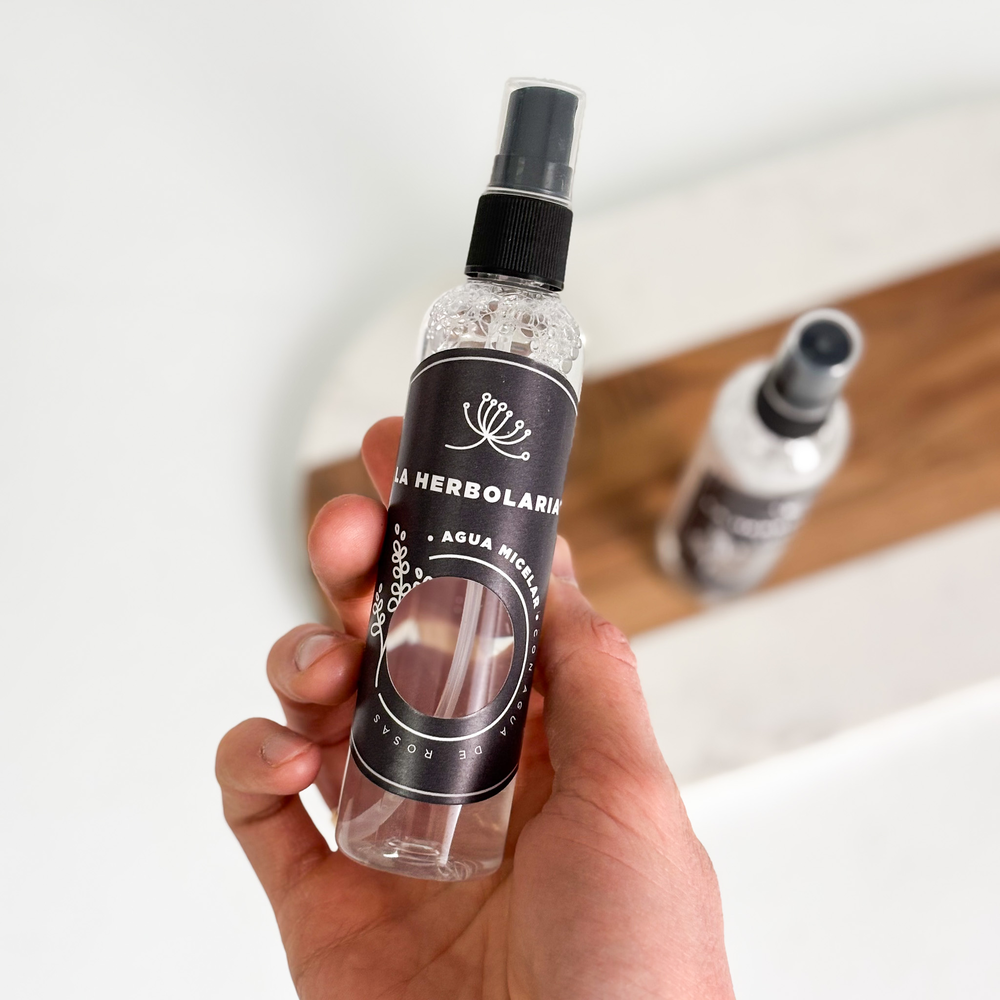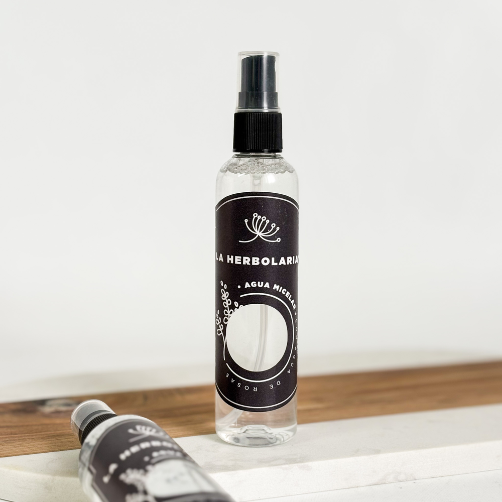 AGUA MICELAR, con agua de rosas. Para limpieza diaria y natural. Desmaquilla e hidrata. Apto para todo tipo de pieles.