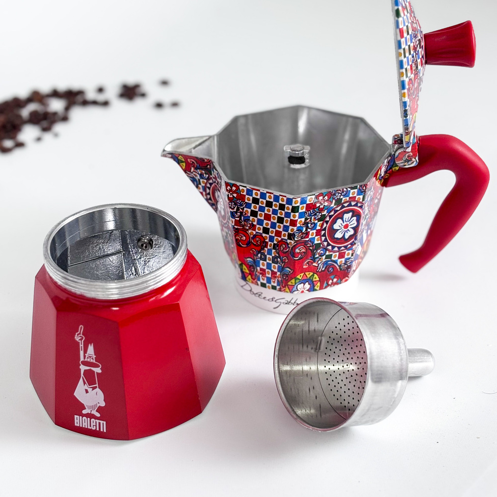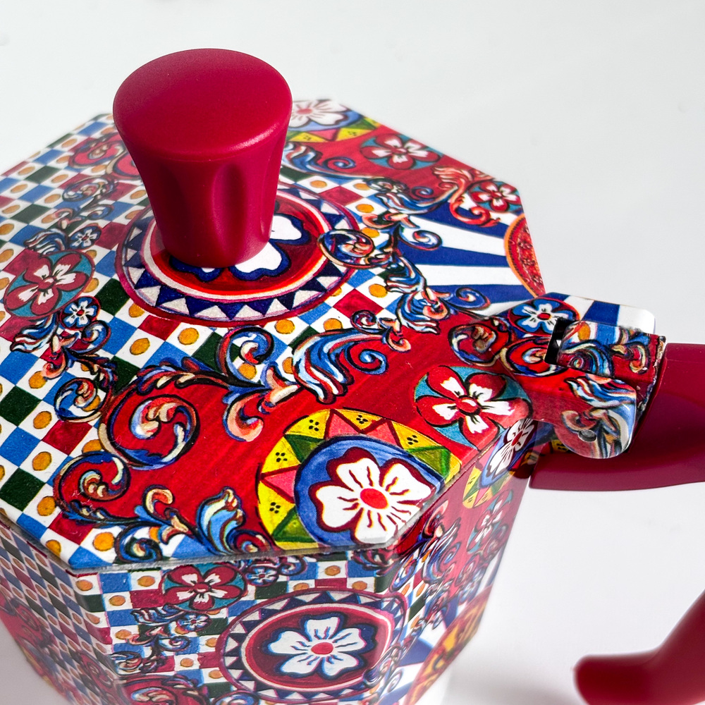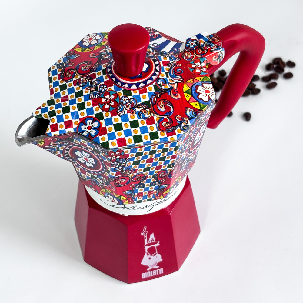 La edición especial de la cafetera Moka express Dolce &Gabbana de Bialetti rinde homenaje a la artesanía, los paisajes y el colorido único de Sicilia, transformando el ritual del café en una celebración de estilo.
