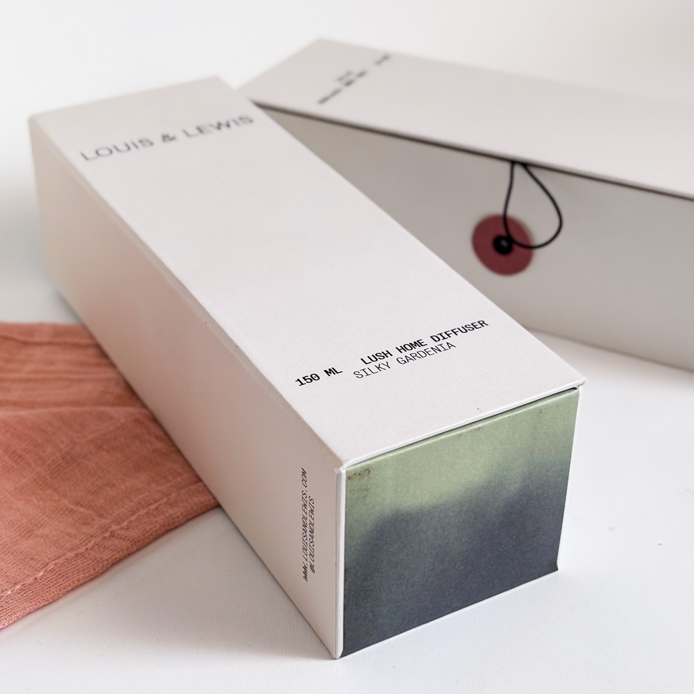 Difusor en envase de vidrio. Familia de la vela Lush, Louis & Lewis. Capacidad: 150 ml