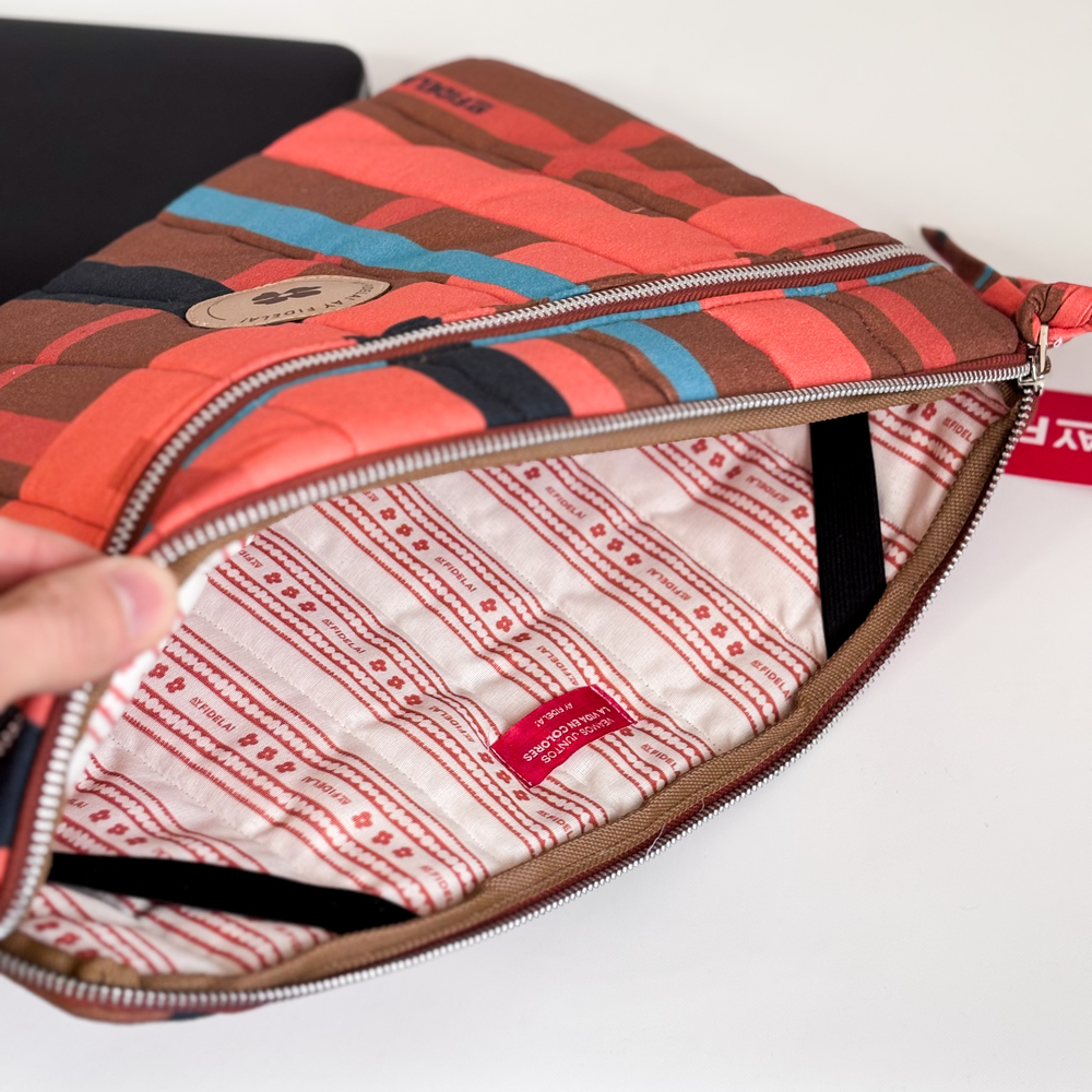 Esta funda con cierre y bolsillo externo te permite guardar todos tus accesorios tecnológicos de manera segura y ordenada. Su diseño está pensado para proteger tu computadora de cualquier accidente, gracias a su relleno de espuma y dos elásticos sujetadores internos que evitan caídas.