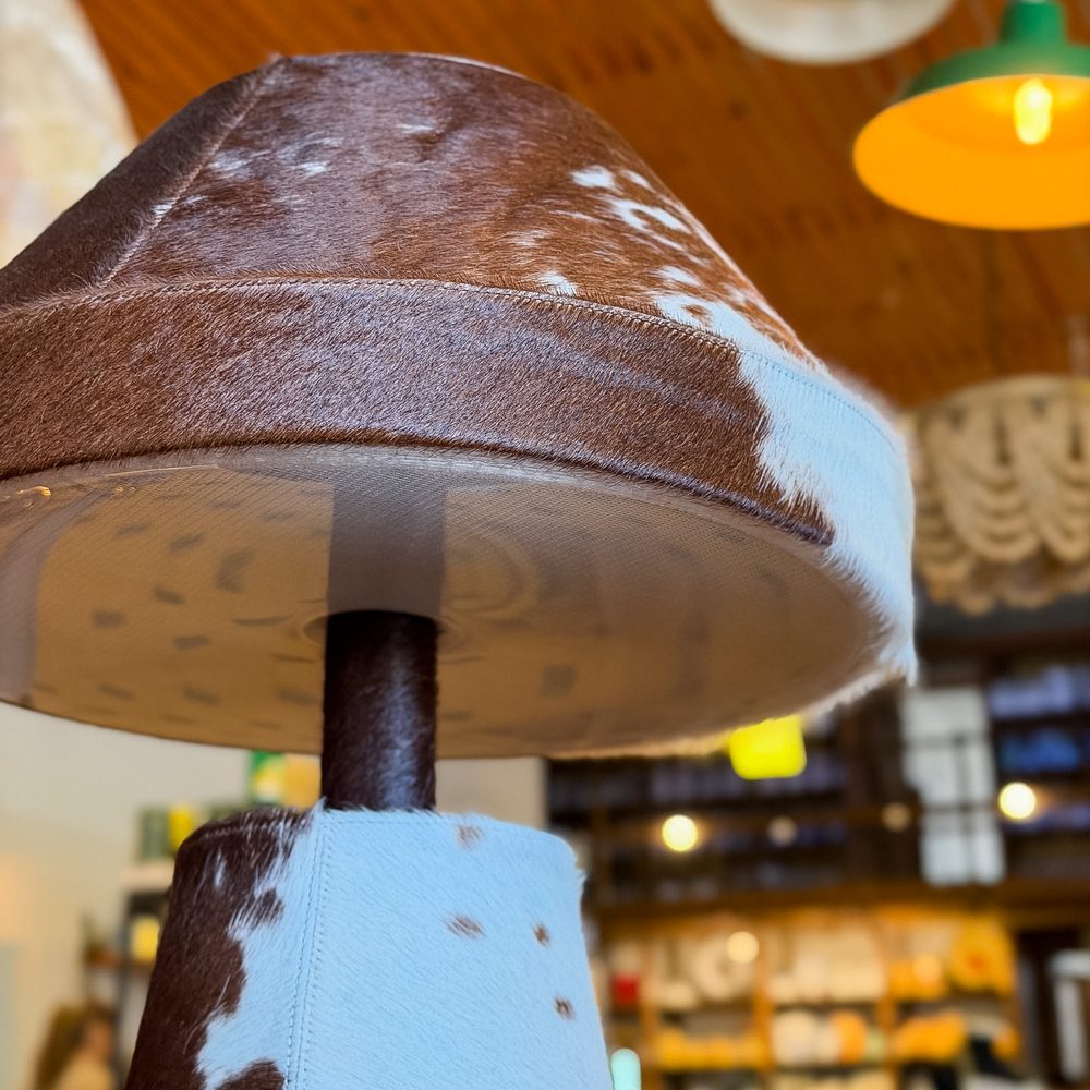 LÁMPARA HONGO DE CUERO CON PIEL DE VACA MARRÓN