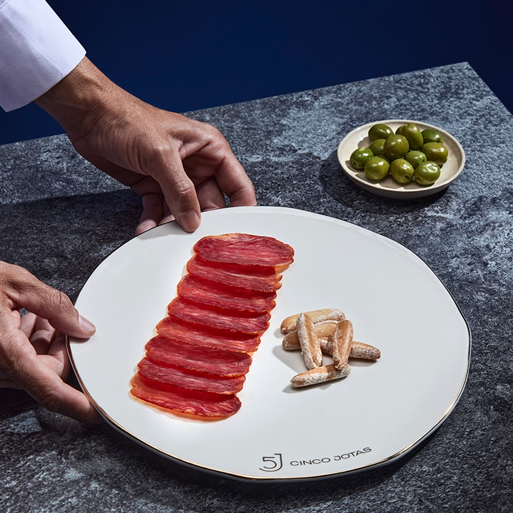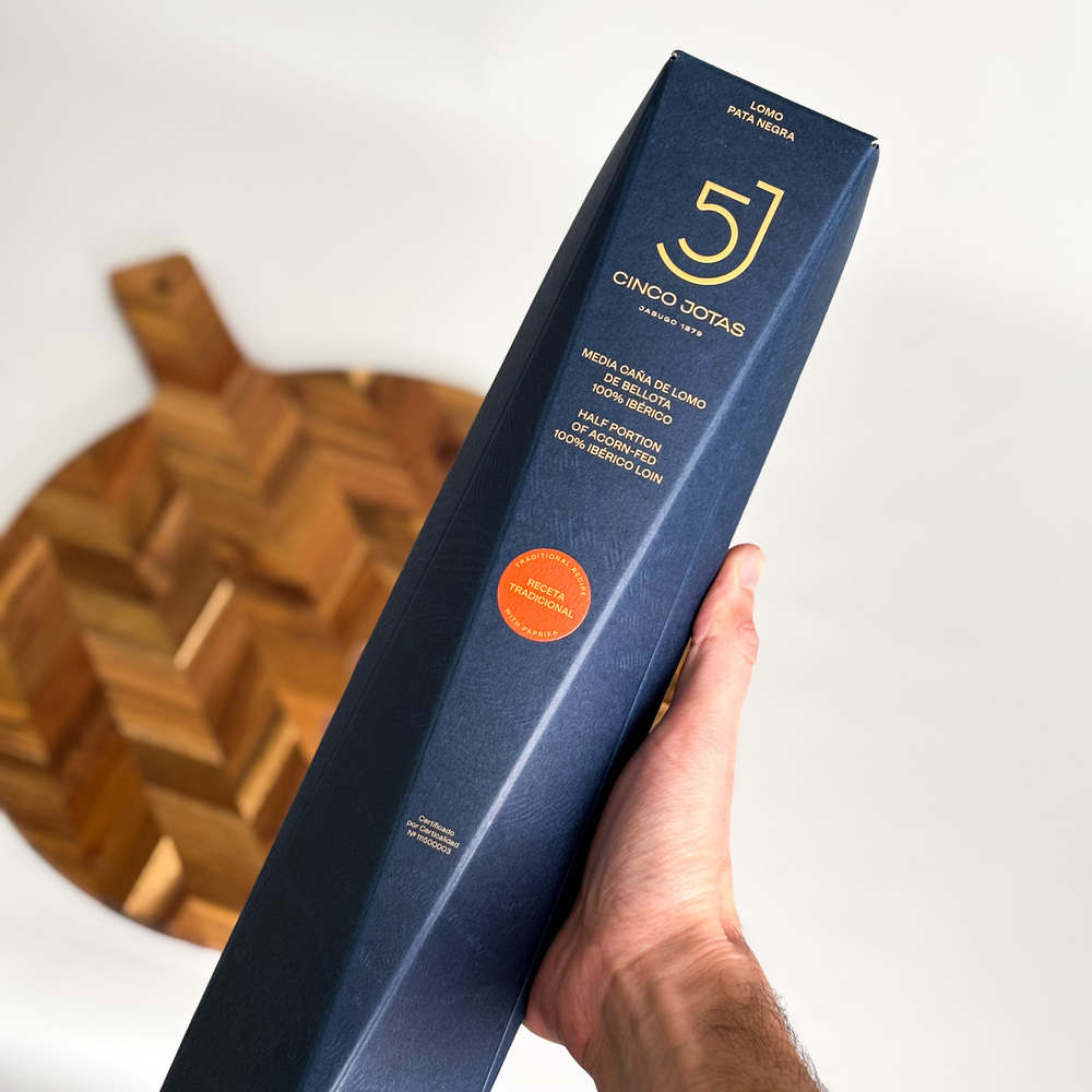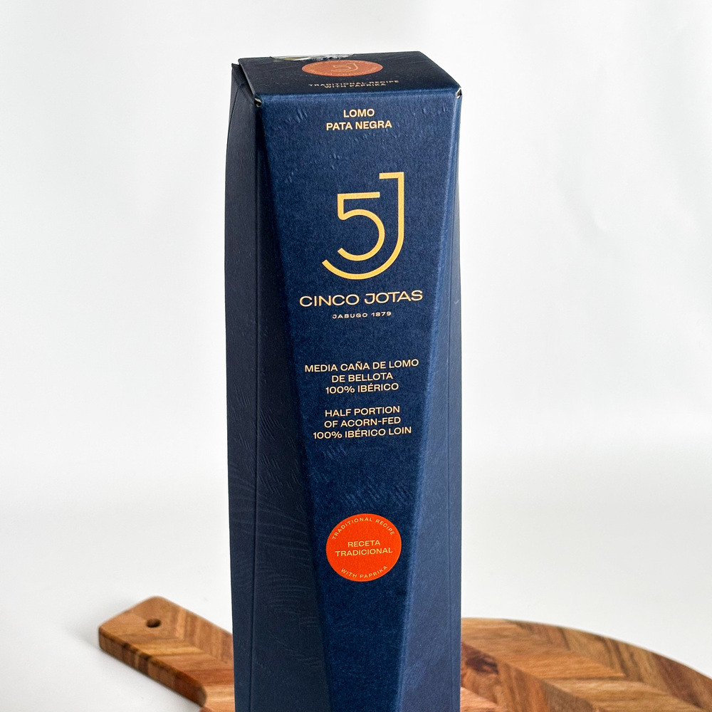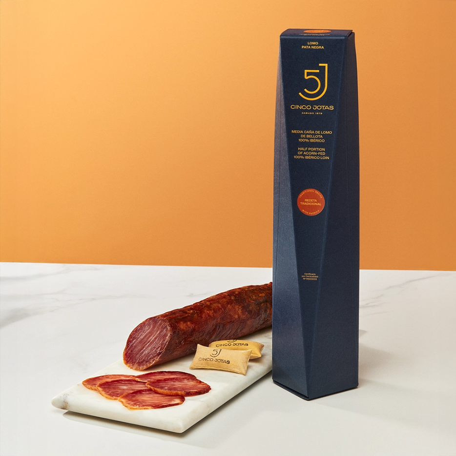 El lomo pata negra Cinco Jotas es el referente de la genialidad y excelencia de su categoría. Desde nuestro origen, Jabugo 1879, sostenibilidad y tradición se unen al talento de nuestros maestros en la elaboración de cada una de sus sublimes piezas. El resultado, un sabor que conmueve los sentidos. Cinco Jotas es el ícono de la gastronomía española.