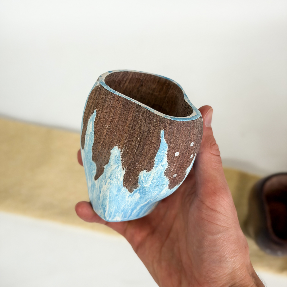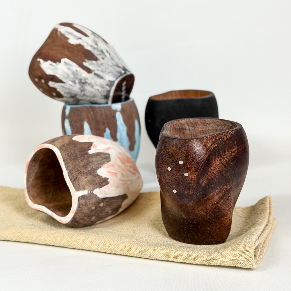 Mate tallado amorfo en madera de algarrobo. Calidad premium.