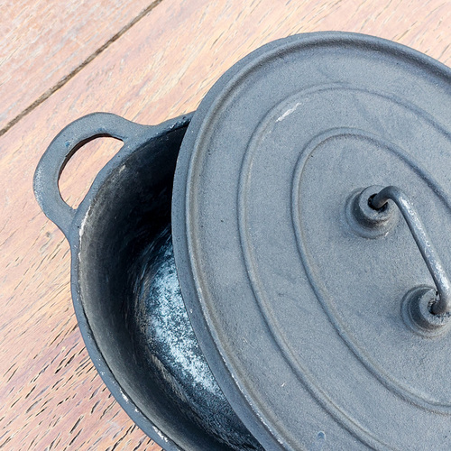 Olla ovalada de hierro fundido de 27 x 20 cm de boca, capacidad 4 litros.