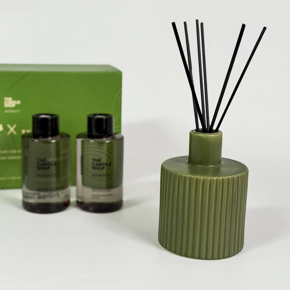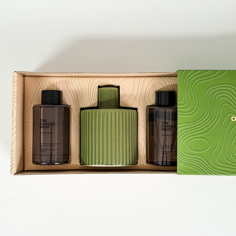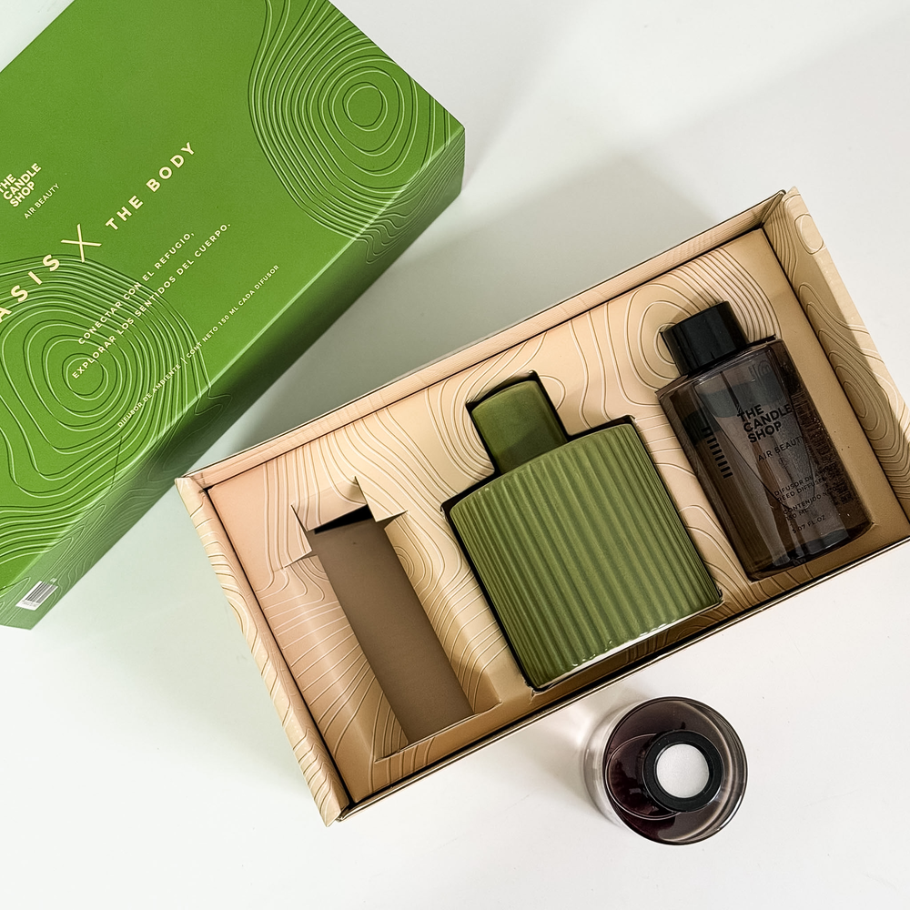 Difusor moderno THE CANDLE SHOP con recarga que nos invita a conectar con los sentidos y renovar las energías. El modelo de colección Oasis x The Body es natural y perfecto para cambiar los aires de cualquier espacio.