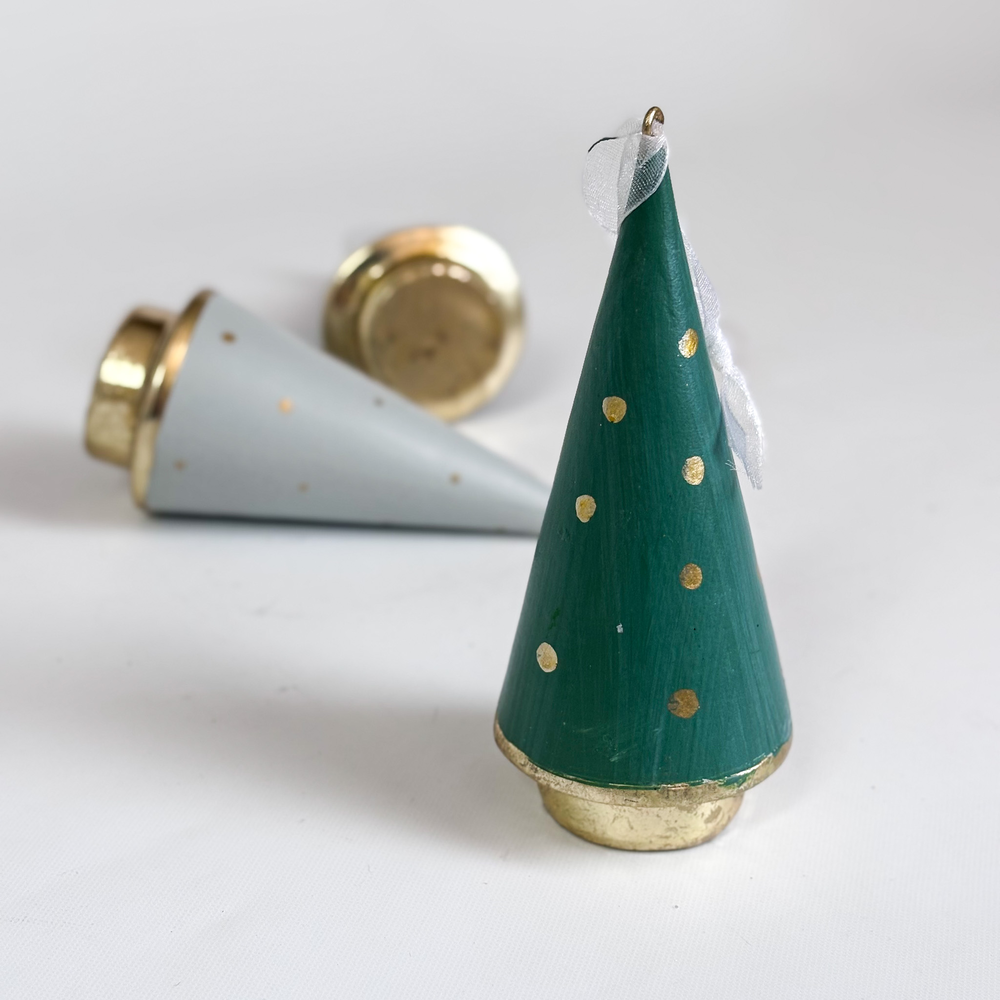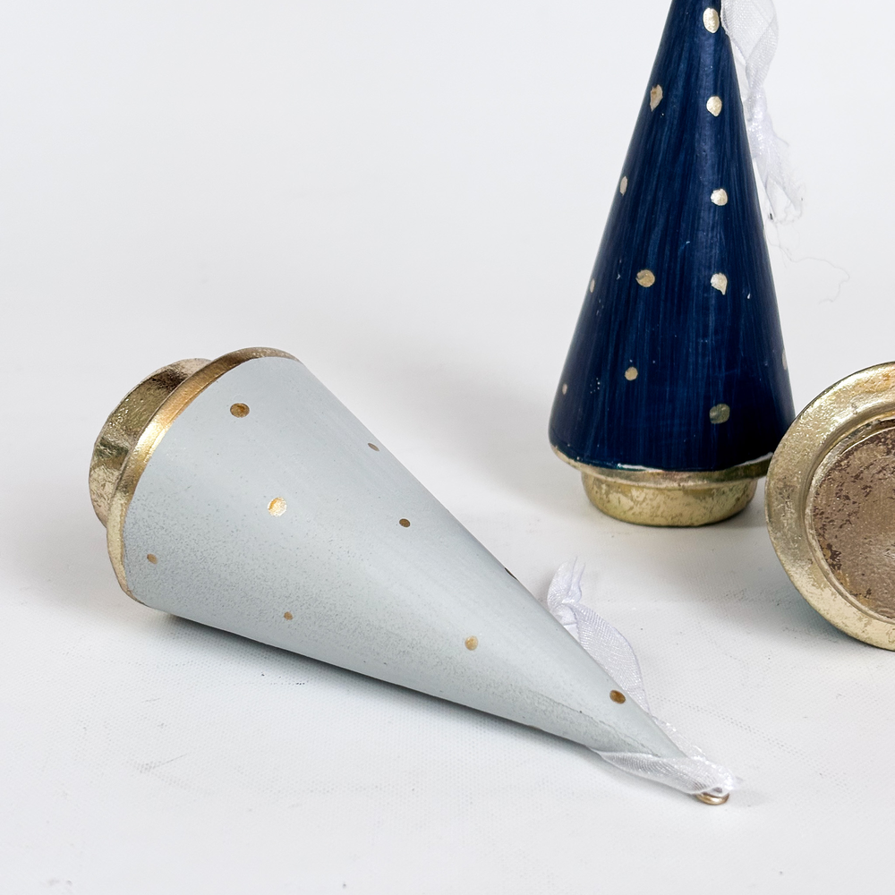 Adorno de Navidad de resina de 12 cm de alto en forma de pino decorado con copos de nieve. Disponibles en color azul, verde o gris.