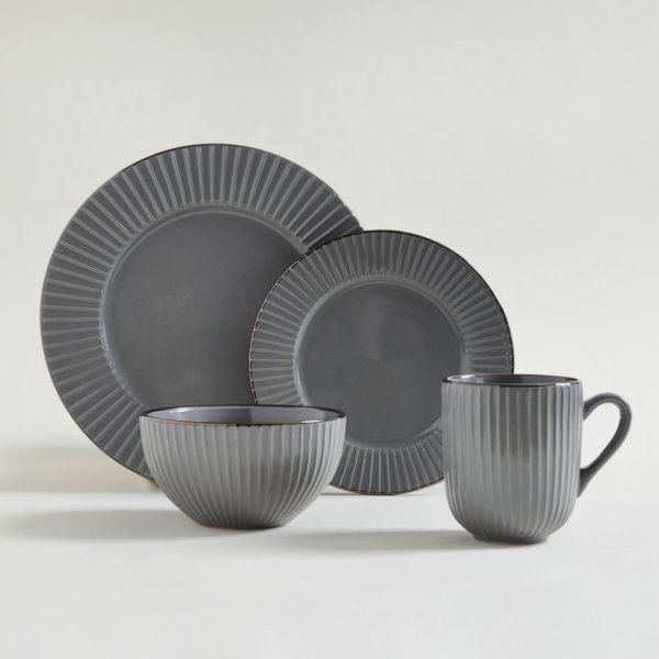 Vajilla protagonista para destacar una mesa con mucho estilo. Ideal para acompañar con copas oscuras y cubiertos negros.