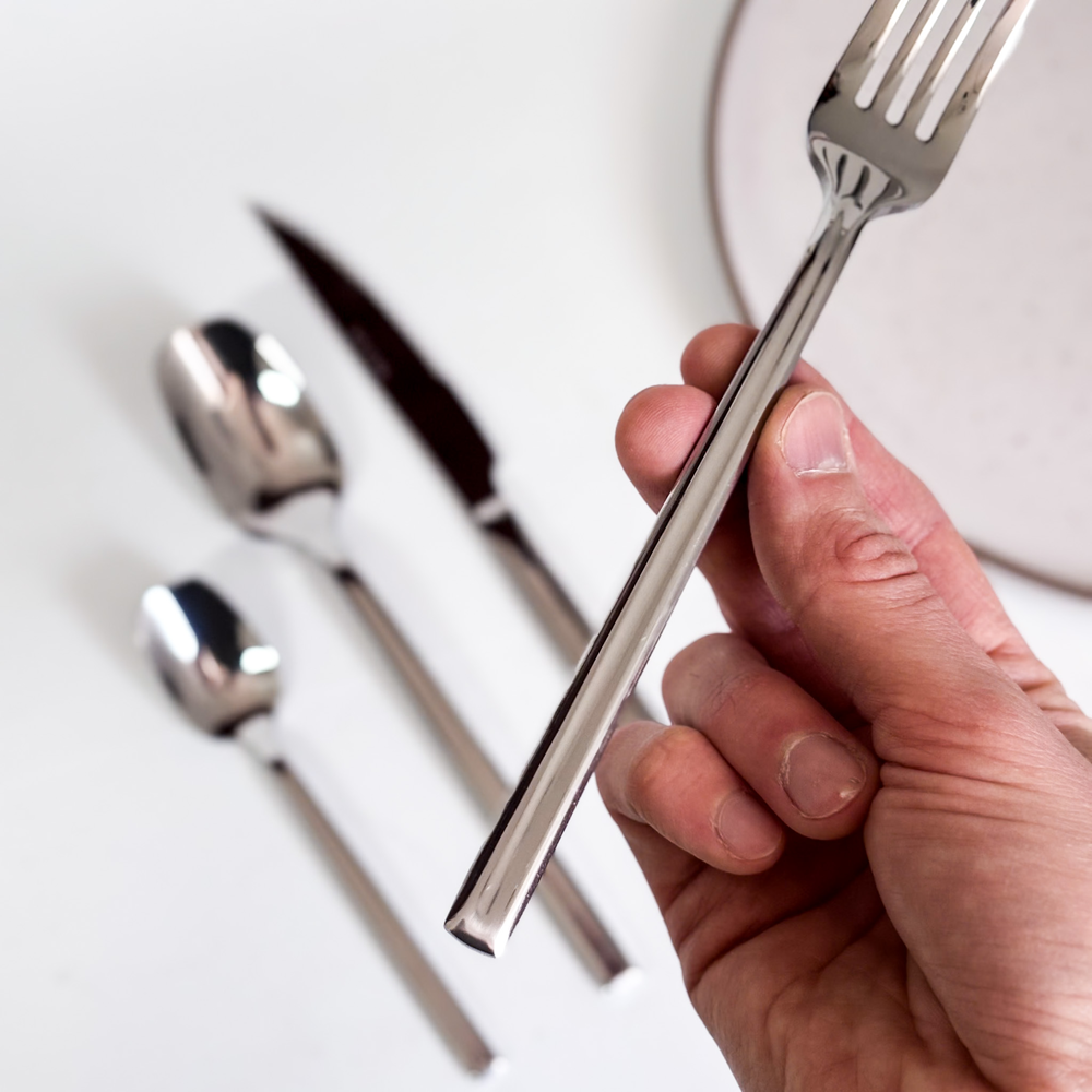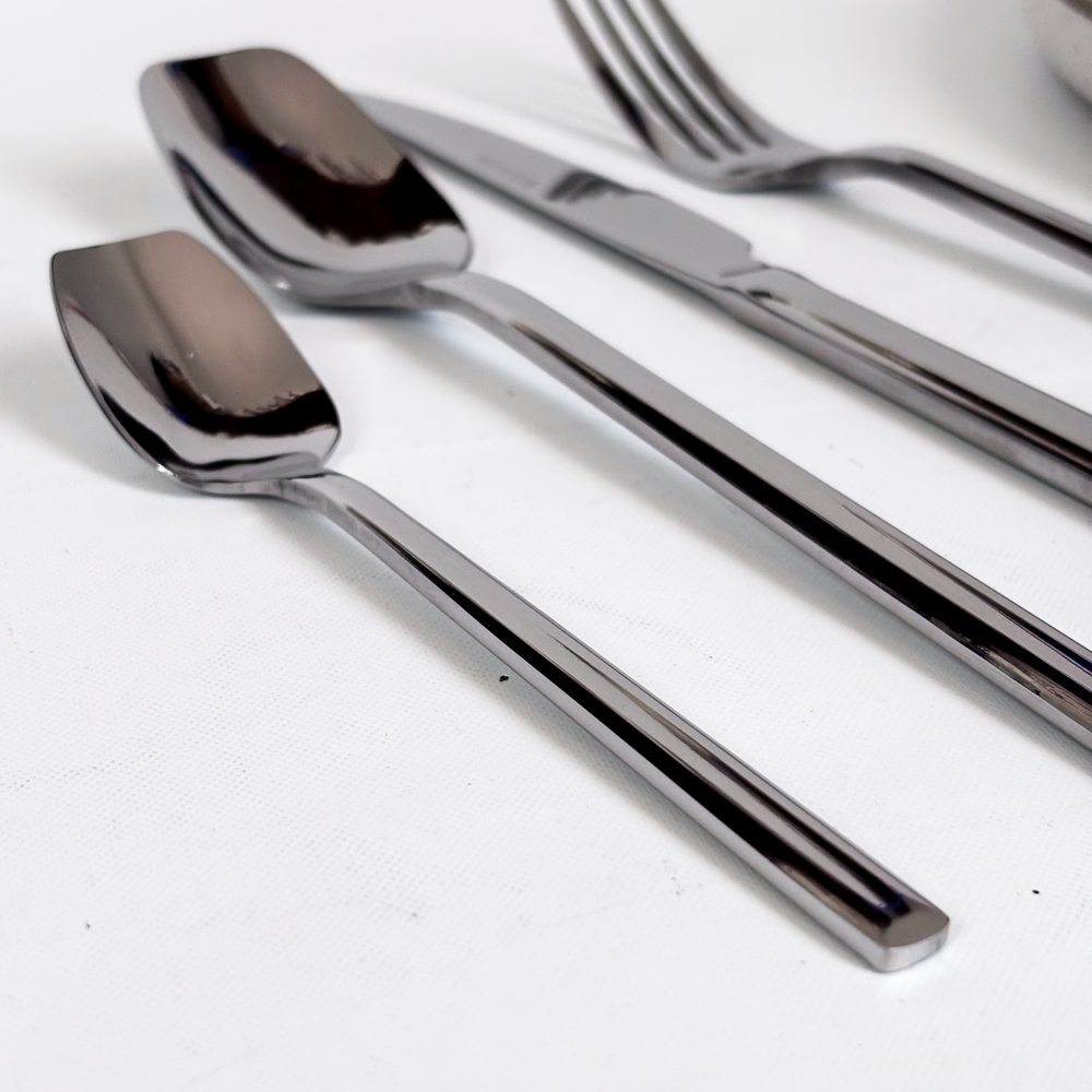 Fabricados en acero inoxidable de alta calidad, cada pieza ofrece un equilibrio perfecto entre resistencia, peso y terminación pulida, elevando la experiencia de cada comida. Sutiles al tacto, firmes al uso y visualmente sofisticados, estos cubiertos convierten cada comida en un pequeño ritual de disfrute. Sentí el equilibrio entre forma y función en cada bocado y dale a tu mesa un acabado que se ve, se siente y se recuerda.