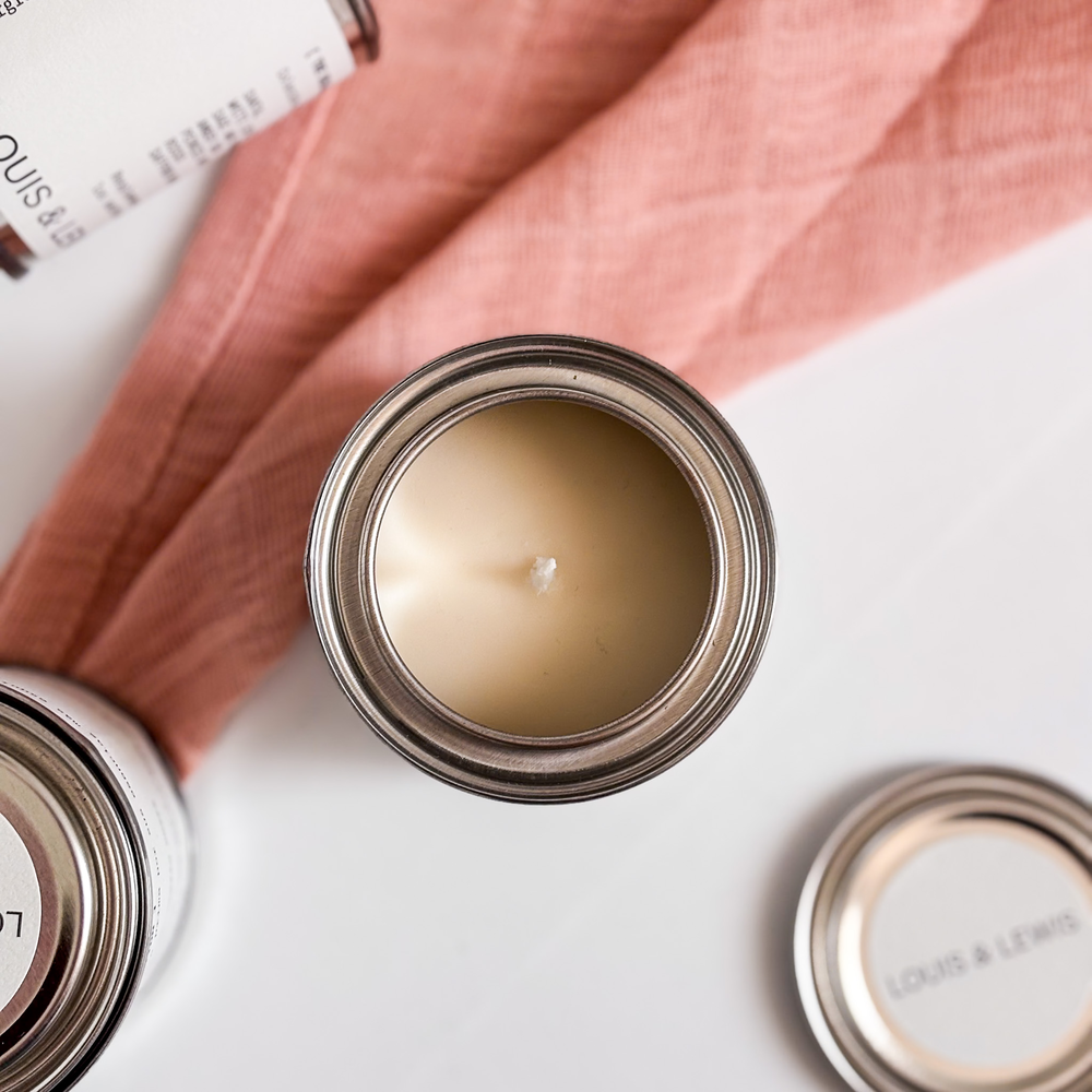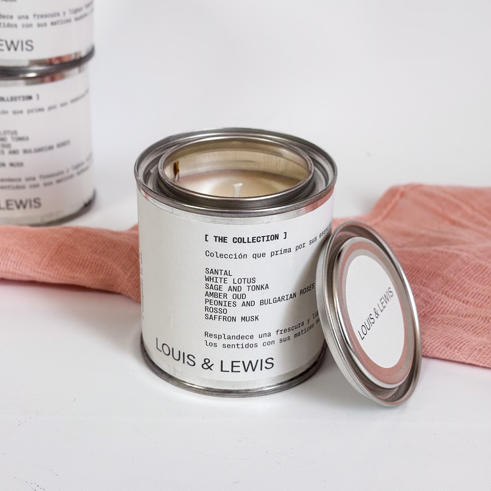 Vela de cera de soja 100% natural. Contenedor lata con tapa.